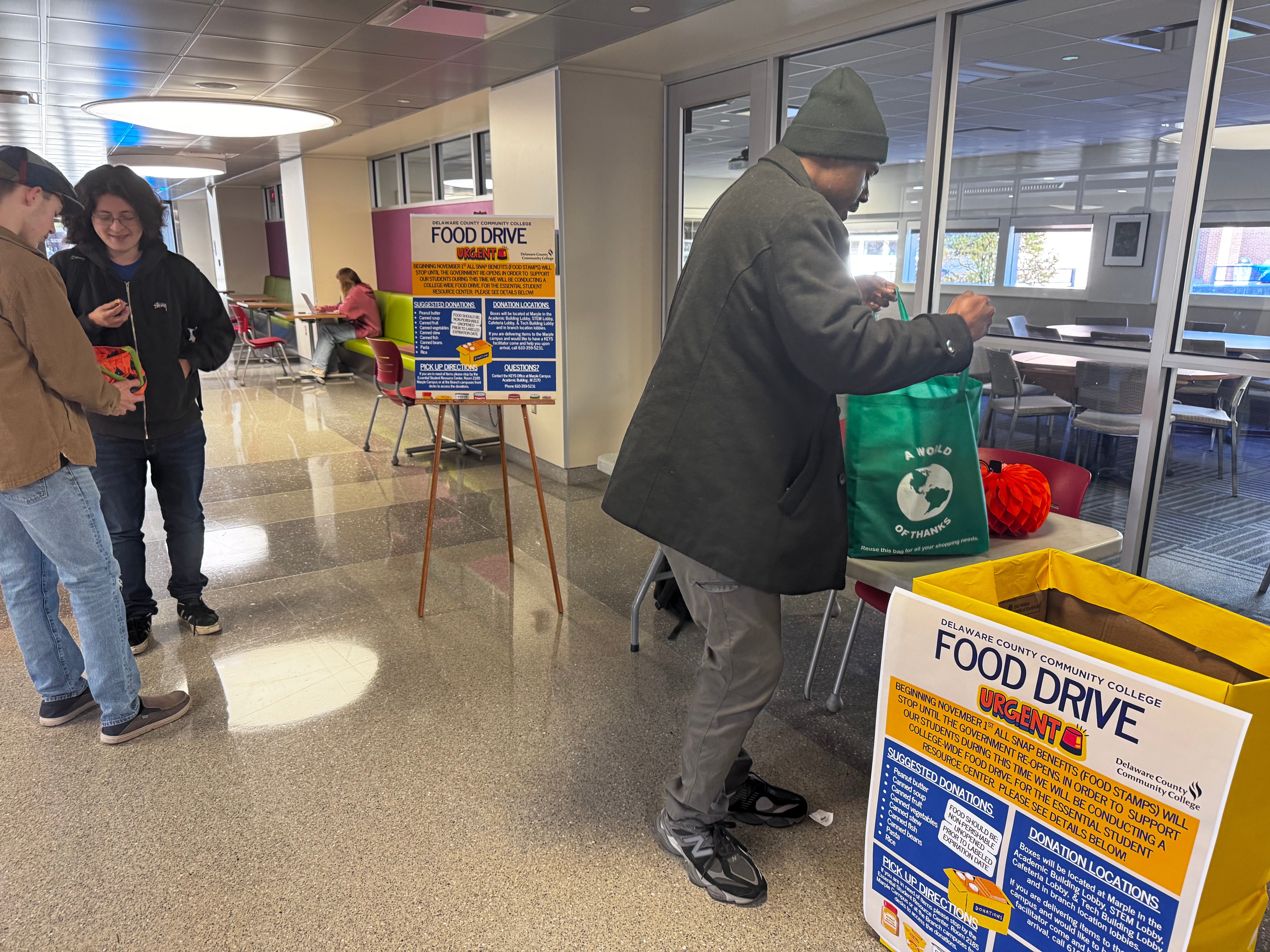 MARPLE, Pa. — One of Delaware County Community College’s Phi Theta Kappa (PTK) honor society chapters is partnering with KEYS (Keystone Education Yields Success) for an ongoing food drive to aid students affected by the recent government shutdown, which ended after President Trump signed into law a spending package on Wednesday evening.