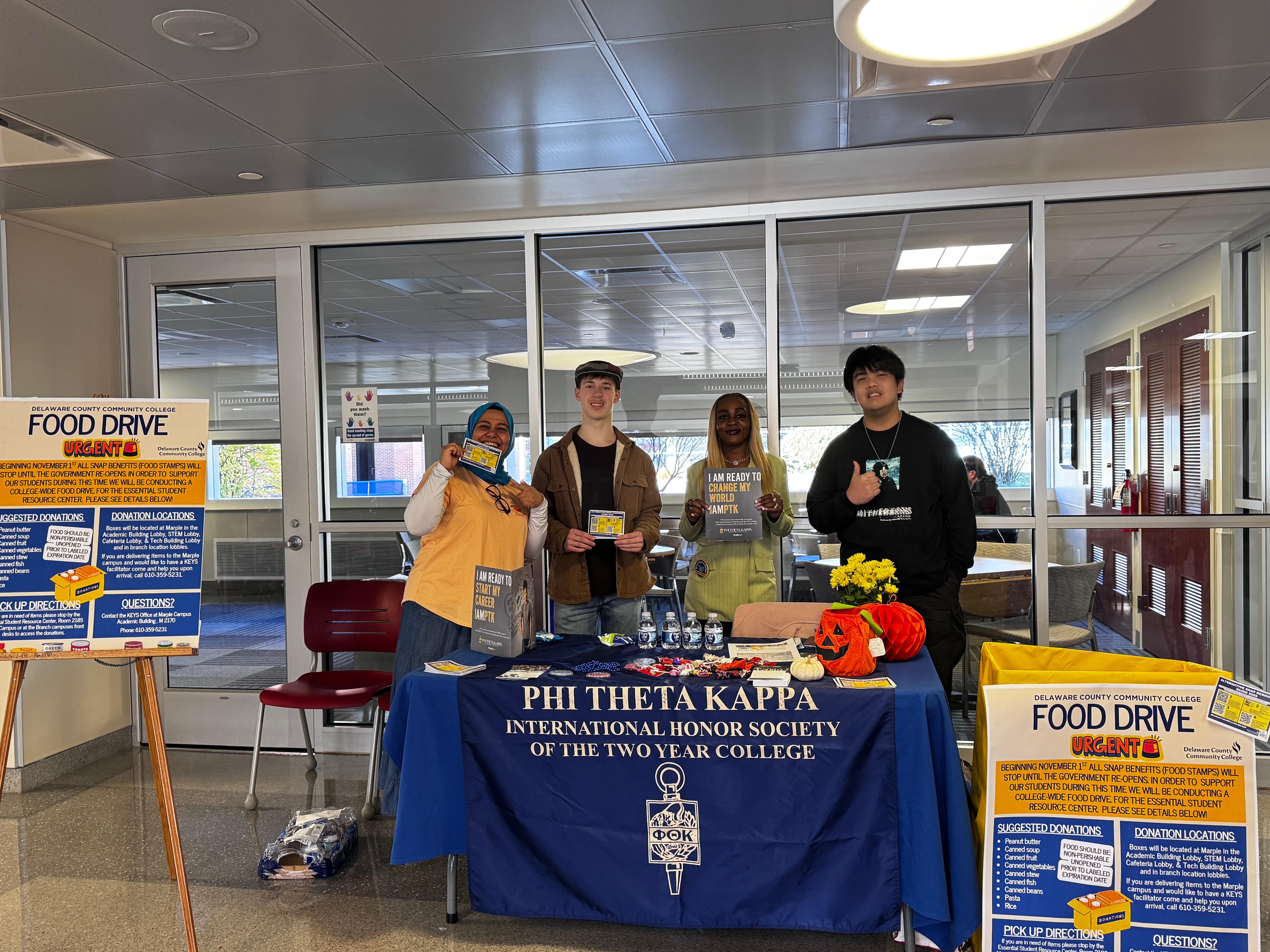 On Tuesday, Nov. 4, the Alpha Tau Epsilon chapter of PTK hosted an information table where students and community members could speak with PTK leaders, donate goods, and learn more about the food drive and its mission.