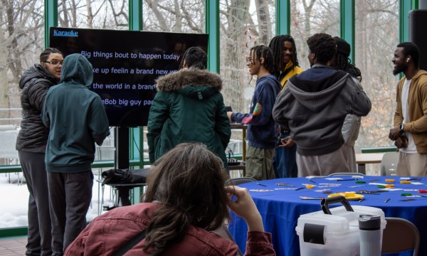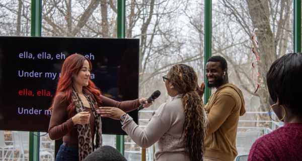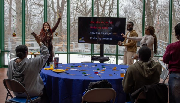 MARPLE, Pa. — On Tuesday, Feb. 17, during Q-time at the Marple Campus, the Global Ambassadors hosted “Voices and Vibes,” a karaoke event in the Academic Building café. Created to celebrate Black History Month, the gathering drew a crowd of students and faculty who enjoyed an abundance of food and baked goods, including pizza, brownies, cheesecake, strawberry shortcake, and assorted candy.