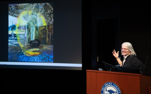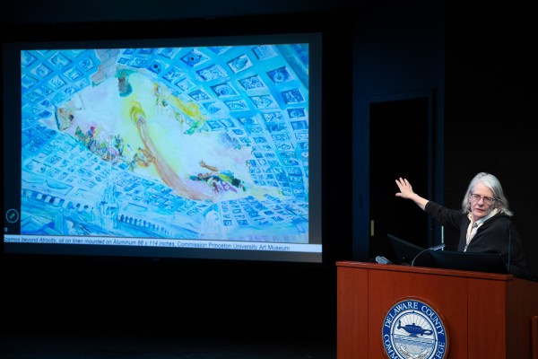 On Thursday, March 19, at 4 p.m., Dr. Olivia Gruber Florek welcomed Irish to the podium for an hour-long discussion regarding her recent works. A painter, ceramicist, and political activist who has been active in the Philadelphia region since the 1980s, Irish served as juror for an exhibition dedicated to showcasing local talent.